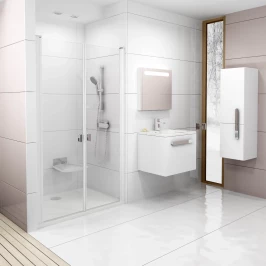 • Распашные двери Chrome обладают уникальным преимуществом, а именно открываются как вовнутрь, так и наружу. Таким образом, вода стекает вовнутрь душевого пространства и пол остается сухим, что исключает возможность подскользнуться.