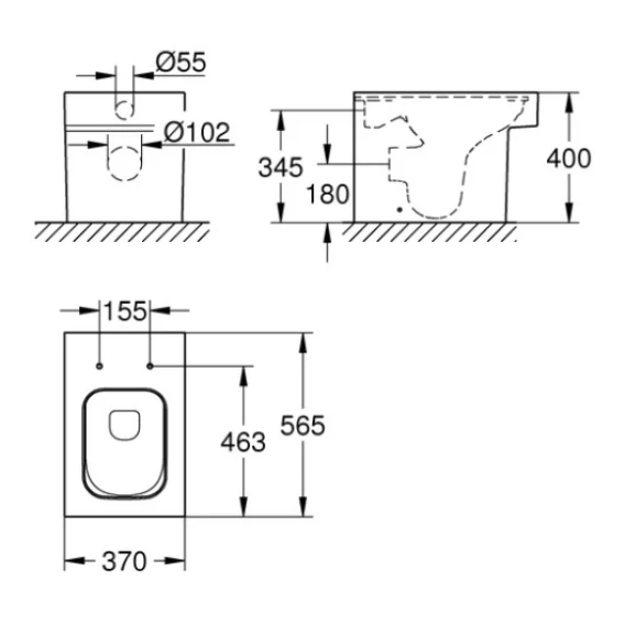 Чаша напольного безободкового унитаза Grohe Cube Ceramic 3948400H