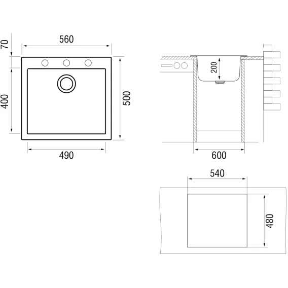 Кухонная мойка трюфель Longran Cube CUG560.500 - 54