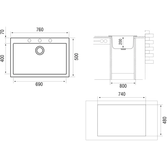 Кухонная мойка трюфель Longran Cube CUG760.500 - 54