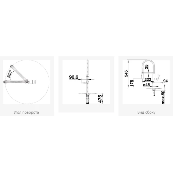 • Вращающийся на 360° излив