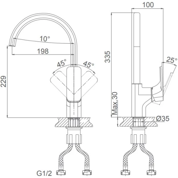 Смеситель для кухни Fmark FS8255A-04 с гибким изливом, хром/серый