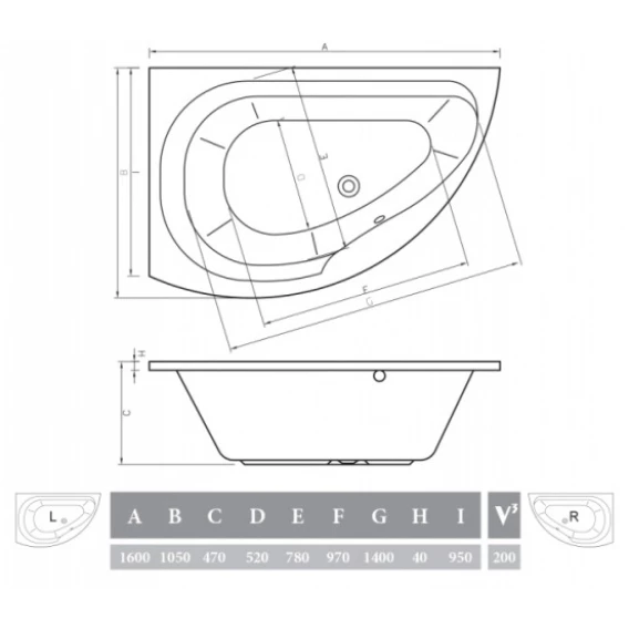 Акриловая ванна 160x105 см Alpen Dallas L AVB0012