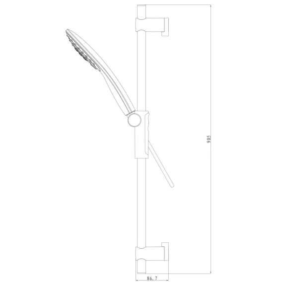 • штанга для душа стальная, длина: 90,5 см, расстояние между монтажными элементами: 24–85 см
