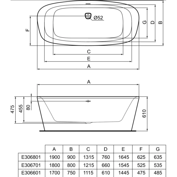 • свободностоящая ванна 170X75 см, акрил 5 мм