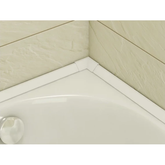 Универсальный, декоративный бордюр для ванн и поддонов Материал ПВХ (PVC) – полимер, устойчив к размножению плесени и бактерий, к химическому воздействию щелочей, минеральных масел и кислотам. Срок службы 40 лет. В комплект входит: Угловое соединение 2 шт. Торцевые накладки 2 шт. Декоративный профиль 200 см. 2 шт.