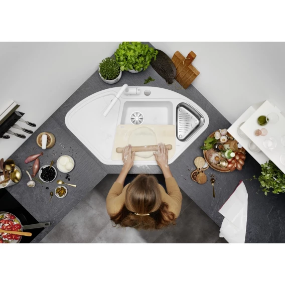 • Большая основная чаша и просторная дополнительная чаша для оптимального использования рабочего пространства углового шкафа