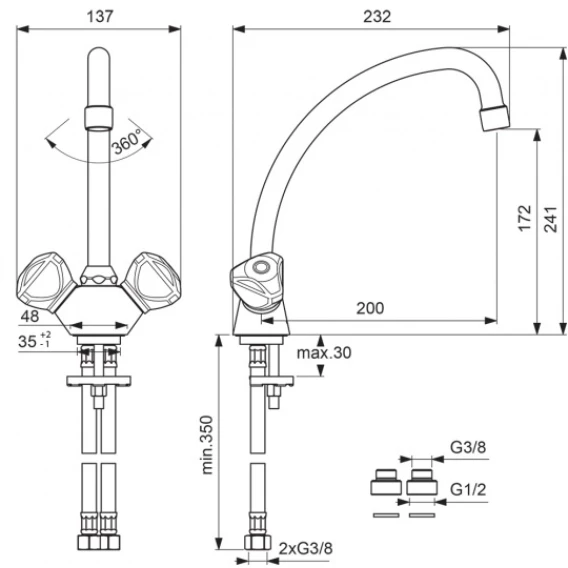 Крепление, Аэратор, Гибкая подводка, Переходник для подводки на 1/2''