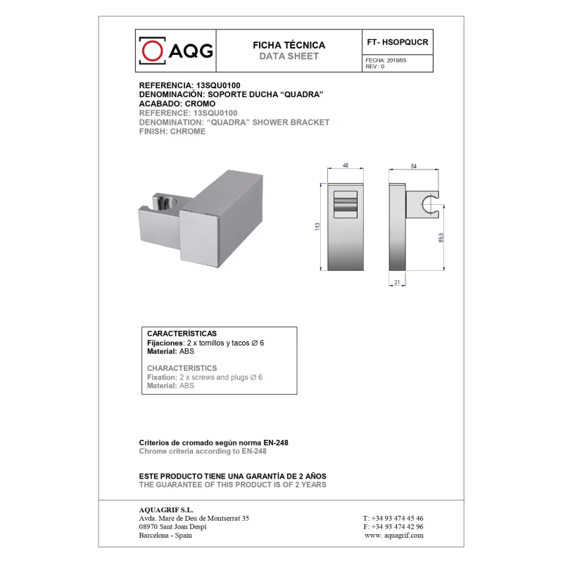 Держатель для душа AQG Quadra 13SQU0100 хром