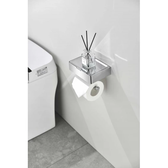 Держатель туалетной бумаги Grocenberg AC0050CR с полкой для телефона, хром