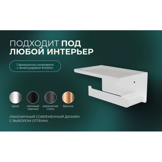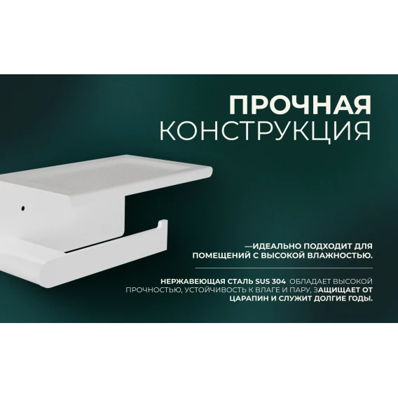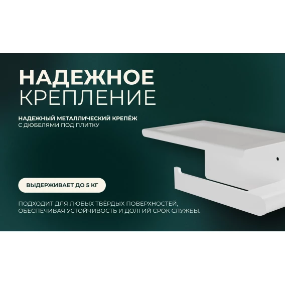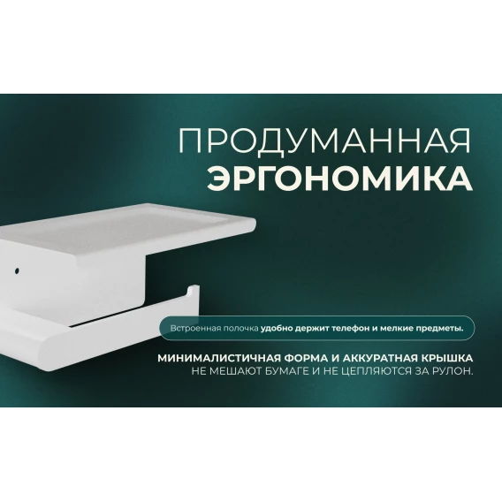 Держатель туалетной бумаги Knotlor Bliss PH102WY с полкой для телефона, белый матовый