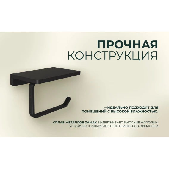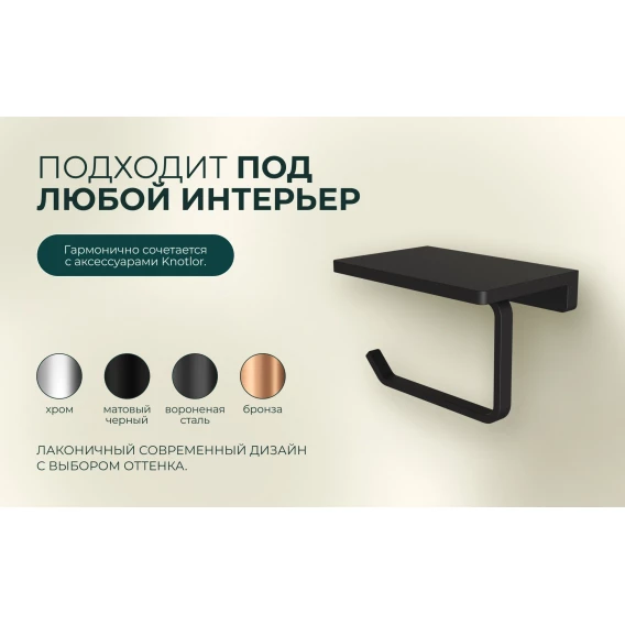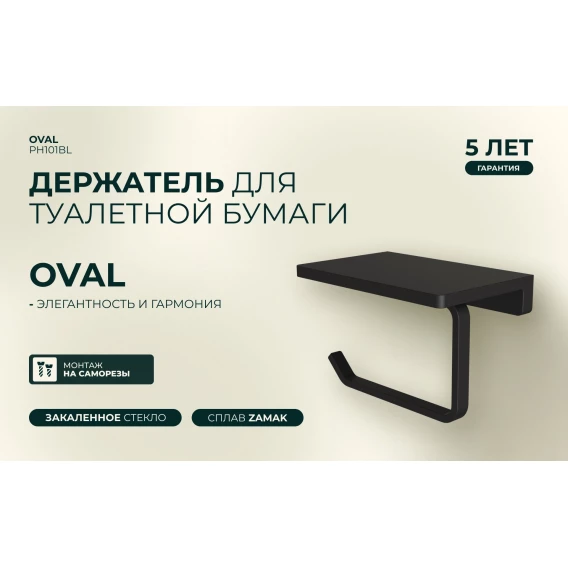 Держатель туалетной бумаги Knotlor Oval PH101BL с полкой для телефона, черный матовый