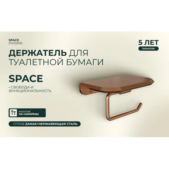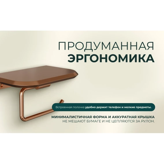 Держатель туалетной бумаги Knotlor Space PH103RB с полкой для телефона, бронза матовая