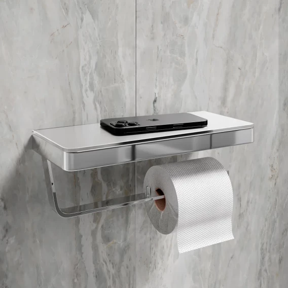 Держатель туалетной бумаги Lemark Glass Line 9721040 с полкой для телефона, двойной, хром
