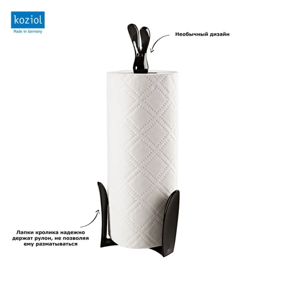 Держатель бумажных полотенец ROGER – это забавное приспособление, которое не оставит равнодушным ни одну хозяйку. Милый кролик надежно держит рулон лапками, не позволяя ему разматываться. Украсьте свою кухню необычными полезными аксессуарами, и у вас всегда будет яркое настроение!Особенности:- необычный дизайн- идеально подходит для небольших кухоньПроизводство: Германия