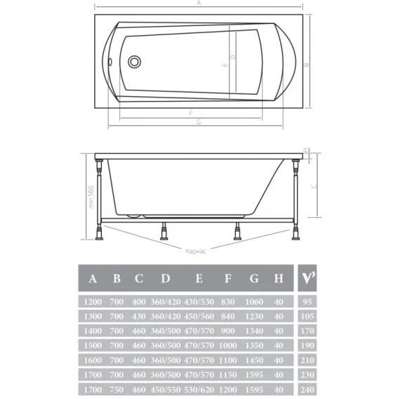 Акриловая ванна 120x70 см Alpen Diana AVP0039