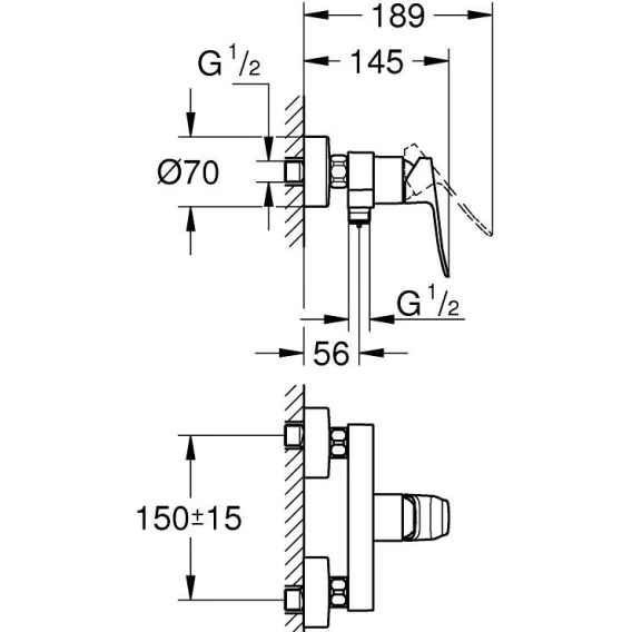 • отвод для душа снизу 1/2" со встроенным обратным клапаном