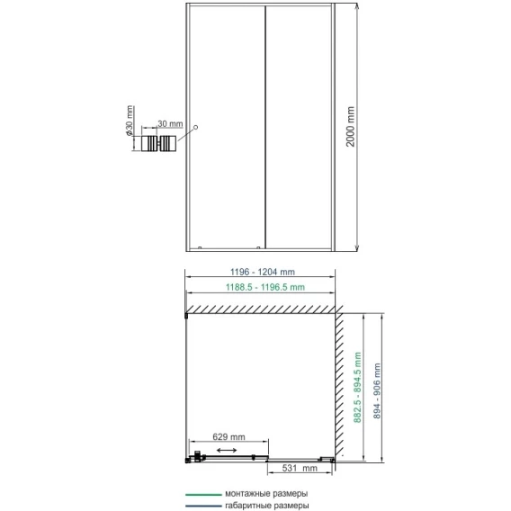 Душевая дверь 120 см Abber Schwarzer Diamant AG301205 прозрачное
