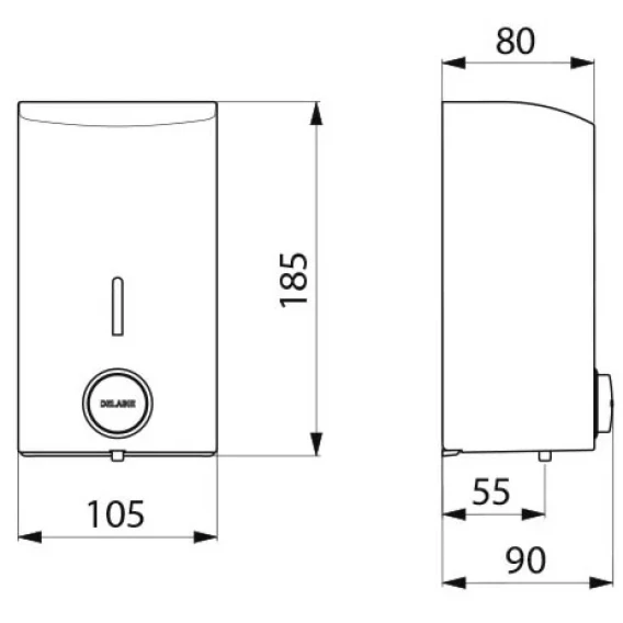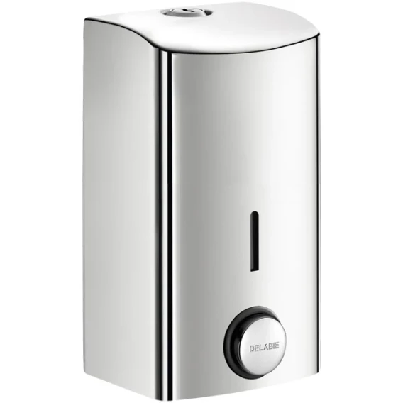 Арт. 510583Настенный диспенсер для жидкого мыла с мягким пуском.Антивандальная модель с замком и стандартным ключом DELABIE.Крышка из бактериостатической нержавеющей стали 304.Цельная крышка на шарнире для простого ухода и поддержания гигиены.Нажимная кнопка с мягким пуском.Антиблокировочная защита : при нажатии, даже продолжительном только одна дозировка.Помпа дозатора с защитой от перерасхода и подтекания мыла (водонепроницаемая).Резервуар с широким отверстием : облегчает наполнение контейнерами с большой емкостью.Резервуар, препятствующий застою жидкого мыла.Окно контроля расходаПокрытие полированная нержавеющая сталь .Толщина стали : 1 мм.Емкость : 0,5 литра.Размеры : 90 x 105 x 185 мм.Для жидкого мыла на растительной основе максимальной вязкости : 3 000 мПа.с.Совместим с водно-спиртовым гелем.