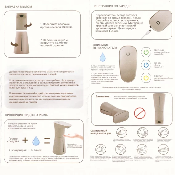 A410-7 диспенсер пластиковый электронный для пены/жидкого мыла с USB подзарядкой, H=185 мм чёрный корпус: ABS пластик 2-х режимная сенсорная регулировка дозировки подачи моющего средства: 0,7 гр./1,4 гр.