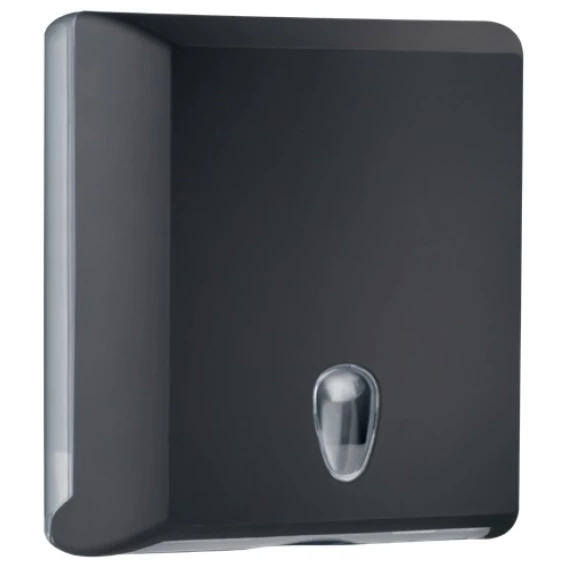 Стильный диспенсер для листовых бумажных полотенец Black выполнен из ABS пластика черного цвета. Диспенсер оборудован универсальным ключом, который подходит ко всем устройствам серии Black и окошком для контроля уровня бумаги. Данный диспенсер предназначен для стандартных листовых бумажных полотенец любого типа сложения. Иными словами, совместно с этим продуктом вы можете использовать любые расходные материалы, какого-угодно производителя. Это позволяет сэкономить до 60% бюджета на бумагу! В комплекте с диспенсером вы найдете универсальный ключ, который подходит ко всем устройствам серии Black, а также все необходимое для монтажа дозатора на стену.