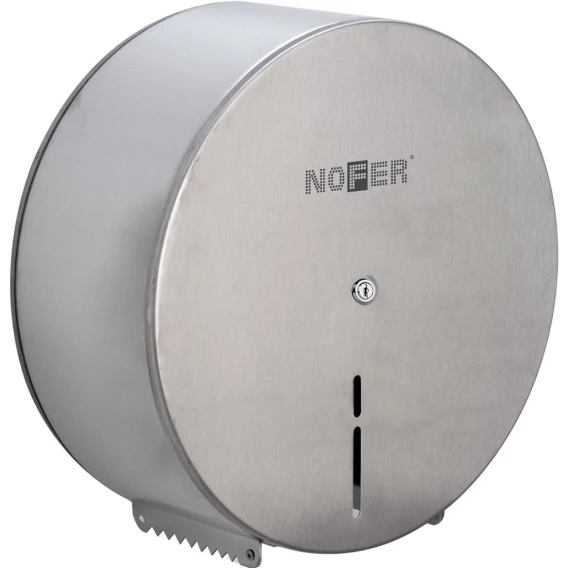 Антивандальный диспенсер для туалетной бумаги предназначен для 1 рулона туалетной бумаги длиной до 500 м. Держатель для туалетной бумаги является универсальным и подходит для любых рулонов туалетной бумаги. Корпус диспенсера изготовлен из нержавеющей стали AISI 304, толщина корпуса составляет 1,0 мм. В комплекте с диспенсером поставляется монтажный комплект и универсальный ключ. Данная модель является увеличенной в размерах вариацией модели NOFER 05001 и в отличии от стандартной модели может использовать с бумагой в рулонах не только длиной 250-300 м, но и 500 м! Совместно с антивандальным диспенсером вы можете использовать бумагу любого производителя и любого размера. При этом вы можете сэкономить до 50% бюджета на расходные материалы!