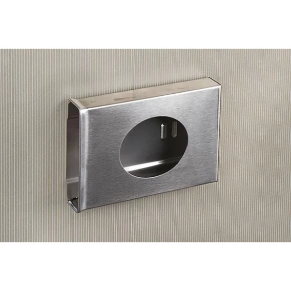 Диспенсер для гигиенических пакетов испанского производителя санитарно-гигиенических изделий Nofer сделан из нержавеющей стали AISI 304. Это особый вид нержавеющей стали, который отличается высокой стойкостью к коррозии и ржавчине. Дозатор может использоваться с любым видом и типом пакетов, любого производителя. Держатель пакетов крепится к стене с помощью двух болтов, которые идут в комплекте с устройством. Емкость-25 шт.