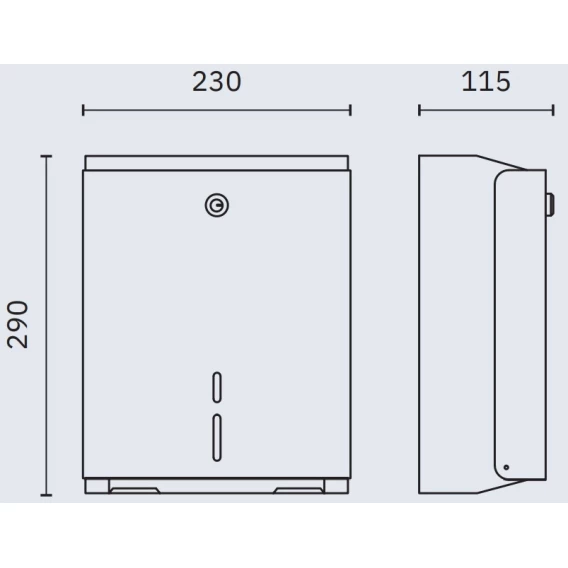 Антивандальный диспенсер для туалетной бумаги в рулонах 250-300 м, выполнен из стали белой имеет защитный ключ, окошко для контроля уровня бумаги внутри и фронтальную загрузку рулона бумаги. Прямоугольный диспенсер является аналогом круглой модели 05001 и предназначен для мест с очень большой проходимостью, таких как торговые центры, рестораны, выставочные комплексы. Держатель произведен из нержавеющей стали, что подчеркивает его высокую стойкость к коррозии, ржавчине и возможным повреждениям со стороны посетителей. У диспенсера нет острых углов и поэтому он по праву считается антивандальным.