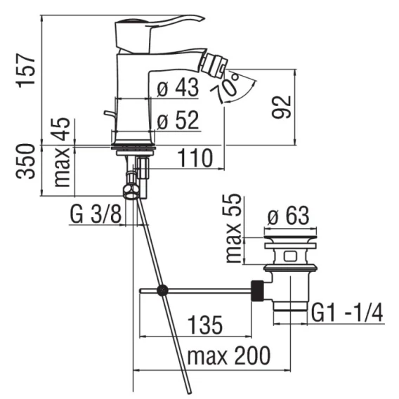 Смеситель для биде с донным клапаном Nobili Sofi SI98119/1CR