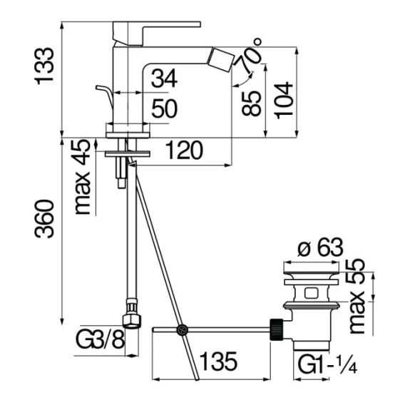 Смеситель для биде с донным клапаном Nobili Up UP94119/1CR