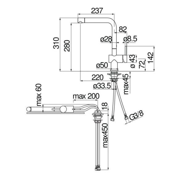 Высота излива 28 см