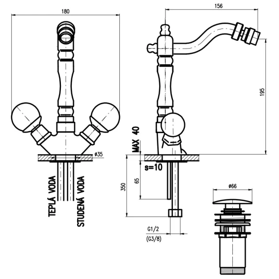 Смеситель для биде с донным клапаном Rav Slezak BRILLIANCE121.5/9