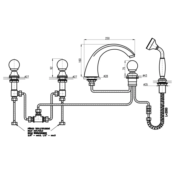 Смеситель на борт ванны Rav Slezak BRILLIANCE169.5PZ