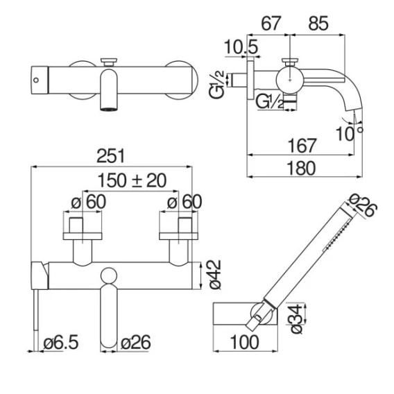 Аэратор, Металлическая розетка, Эксцентрики, Душевой шланг, Душевая лейка, Держатель для душевой лейки