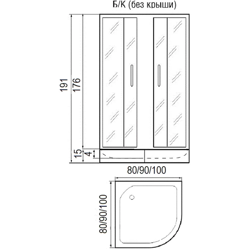 Душевой уголок без поддона 100x100x176 см River DON LIGHT 100/15 МТ