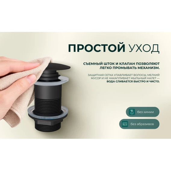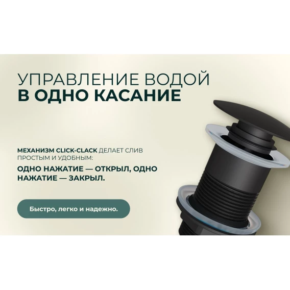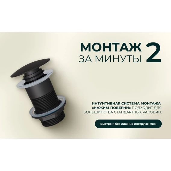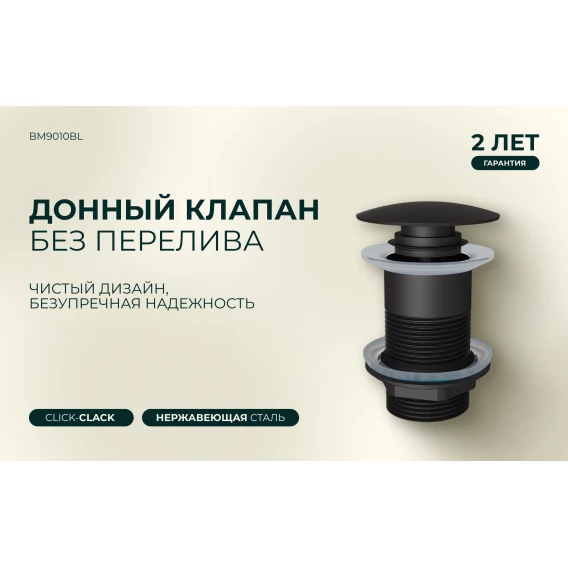 Донный клапан для раковины Knotlor BM9010BL без перелива, черный матовый