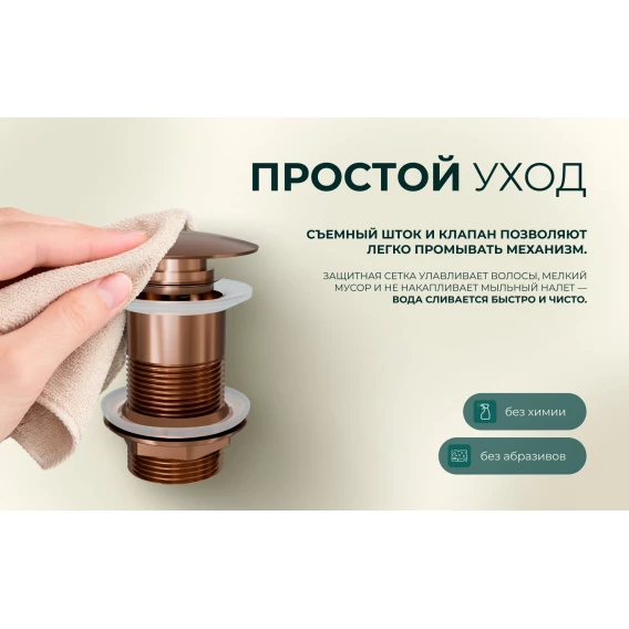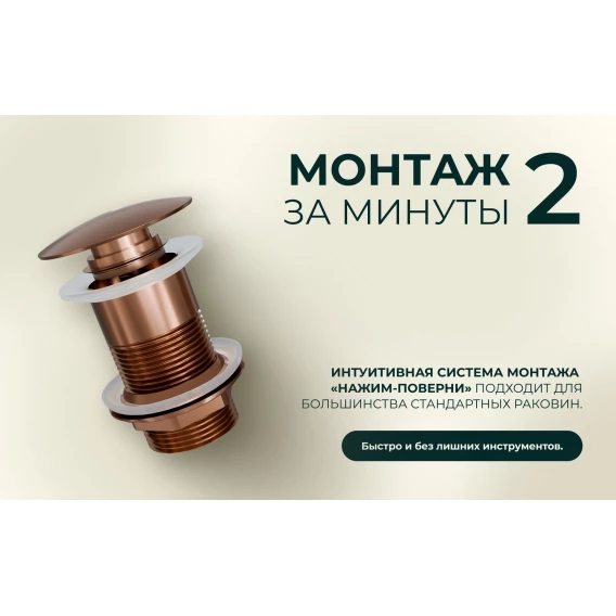 Донный клапан для раковины Knotlor BM9010RB без перелива, бронза матовая