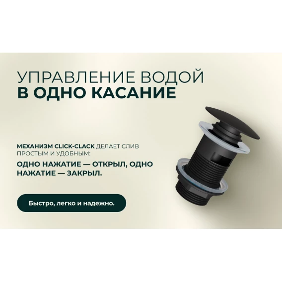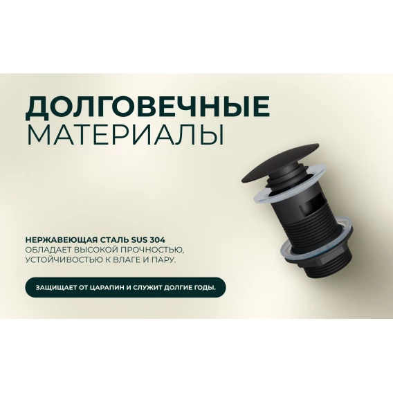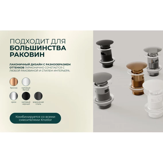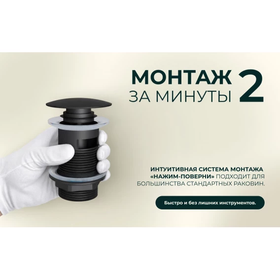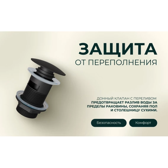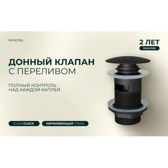 Донный клапан для раковины Knotlor BM9011BL с переливом, черный матовый
