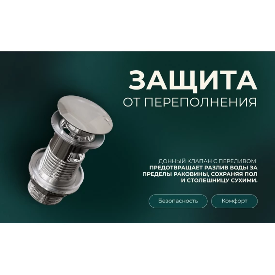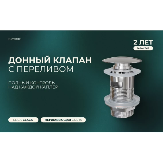 Донный клапан для раковины Knotlor BM9011C с переливом, хром