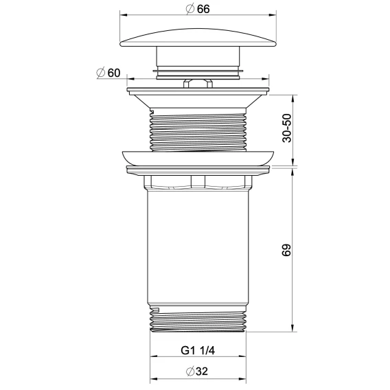 Донный клапан для раковины Wonzon & Woghand WW-88SS09-MW с переливом, белый матовый