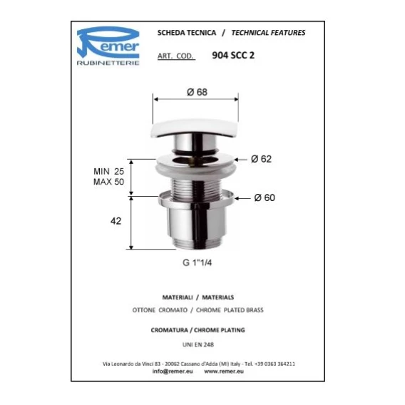 Донный клапан Remer 904SCC114