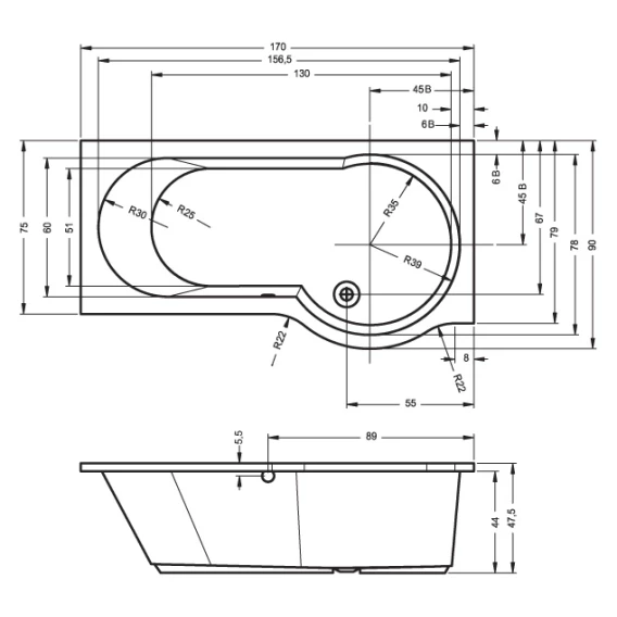 Акриловая ванна 170x90 см Riho Dorado L BA8100500000000