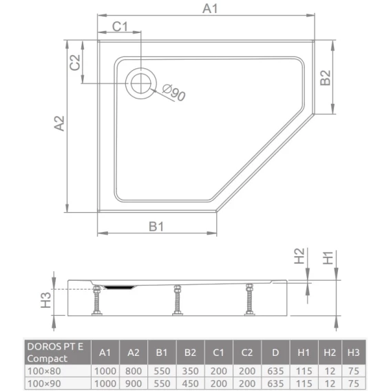 Акриловый поддон 100x80 см Radaway Doros PT E Compact SDRPTP1080-05L