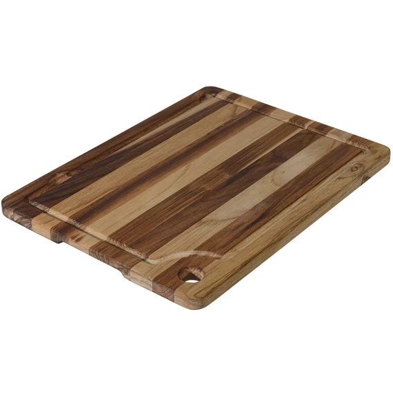 Разделочная доска Marine – отличное решение для домашней и профессиональной кухни. Изделие подходит для нарезки, сервировки и подачи. Коллекция Marine – это удобные доски средней толщины, которые отличаются экологичностью, природной красотой и долговечностью. Для их изготовления используется сертифицированная древесина тика. Материал достаточно твердый и прочный, поэтому доски служат долго, а ножи не затупляются и не оставляют глубоких порезов. Изделия обладают хорошими влагоотталкивающими свойствами, не деформируются и не впитывают сок от нарезаемых продуктов.Доску рекомендуется хранить на сухой поверхности в вертикальном положении, избегая попадания прямых солнечных лучей. Также следует периодически смазывать ее минеральным маслом, чтобы сохранить привлекательный вид и продлить срок эксплуатации.Размер: 40,6х30,5x1,9 см