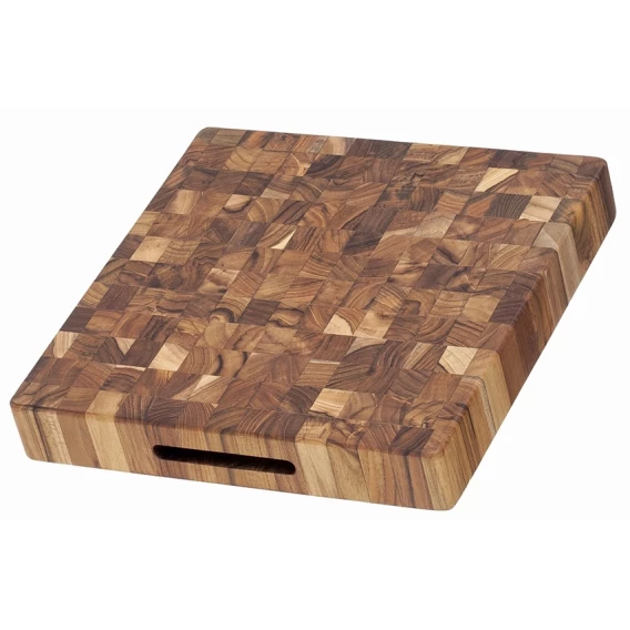 Торцевая разделочная доска Butcher Block станет незаменимым помощником как на домашней, так и на профессиональной кухне. Благодаря продуманному дизайну она также подойдет для сервировки.Массивная и увесистая доска выполнена из сертифицированной древесины тика, волокна которой расположены перпендикулярно режущей поверхности. Материал достаточно твердый и прочный, поэтому изделия служат долго, а ножи не затупляются и не оставляют глубоких порезов. Доски обладают влагоотталкивающими свойствами, не деформируются и не впитывают сок от нарезаемых продуктов.Размер: 31х31 смРекомендуется хранить на сухой поверхности в вертикальном положении, избегая попадания прямых солнечных лучей. Также следует периодически смазывать доску минеральным маслом, чтобы сохранить и продлить срок эксплуатации.
