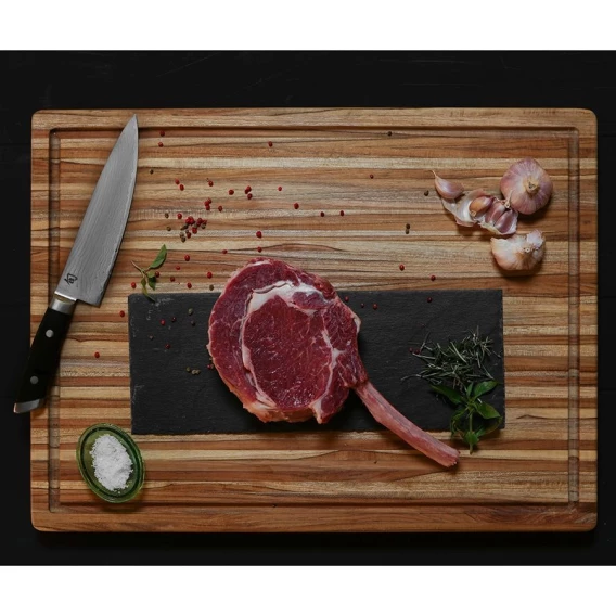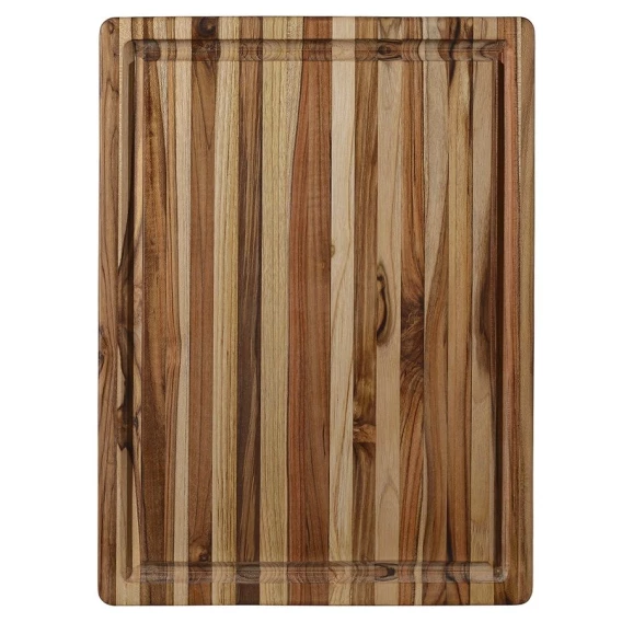 Доска разделочная Traditional станет незаменимым помощником на домашней и профессиональной кухне. Благодаря привлекательному дизайну и уникальному природному рисунку она идеально подойдет для сервировки и подачи. Так же изделие может использоваться по прямому назначению – для нарезания продуктов: сыра, овощей, хлеба, мяса или рыбы. Массивная и увесистая доска выполнена из сертифицированной древесины тика, волокна которого направлены горизонтально. Материал достаточно твердый и прочный, поэтому изделие служит долго, а ножи не затупляются и не оставляют глубоких порезов. Доска обладает хорошими влагоотталкивающими свойствами, не деформируется и не впитывает сок от нарезаемых продуктов.Рекомендуется хранить на сухой поверхности в вертикальном положении, избегая попадания прямых солнечных лучей. Также следует периодически смазывать доску минеральным маслом, чтобы сохранить продлить срок эксплуатации.Размер: 50,8х38,1x3,8 см