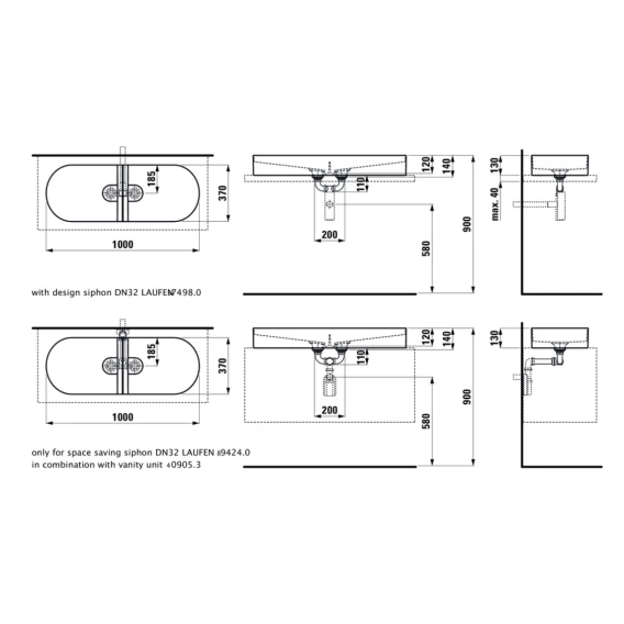 Раковина 100x37 см Laufen Sonar 8.1234.8.000.112.1