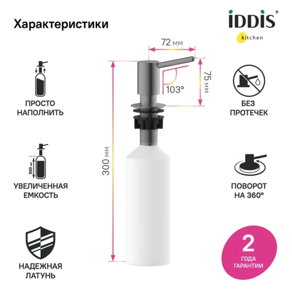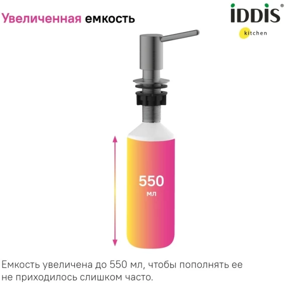 Дозатор для жидкого мыла IDDIS Kitchen Line SDIGM01i59 550 мл, встраиваемый, для кухни, графит матовый