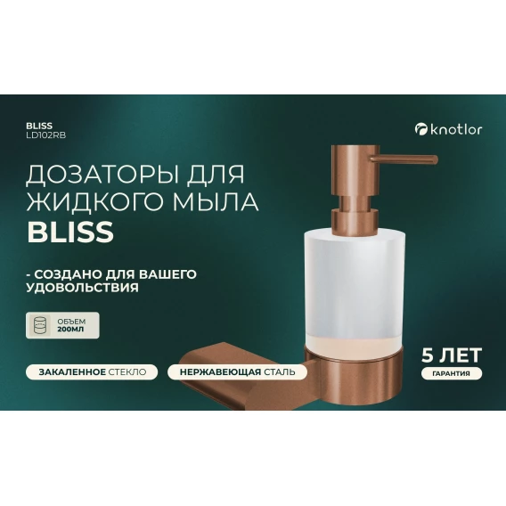 Дозатор для жидкого мыла Knotlor Bliss LD102RB 200 мл, настенный, бронза матовая