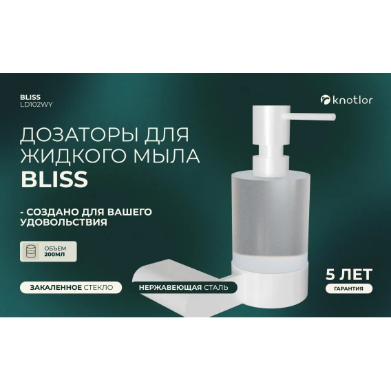 Дозатор для жидкого мыла Knotlor Bliss LD102WY 200 мл, настенный, белый матовый